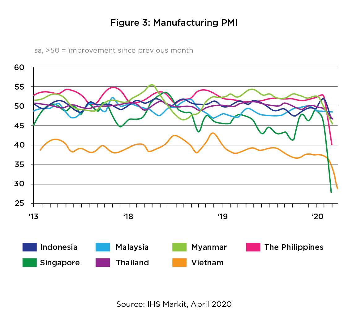 6IHS Markit, ‘IHS Markit ASEAN Manufacturing PMI: PMI tumbles to record low in March amid global COVID-19 pandemic’, April 2020.