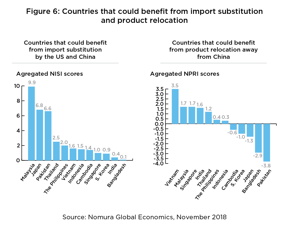 *Nomura utilized the Nomura Import Substitution Index (NISI) to identify which Asian countries would benefit the most from Chinese and US import substitutions (e.g. importing from other countries due to tariffs imposed).